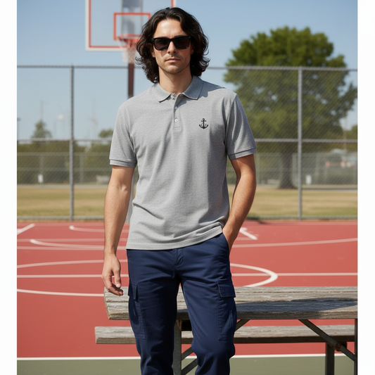 Men’s Grey Embroidered Polo Shirt
